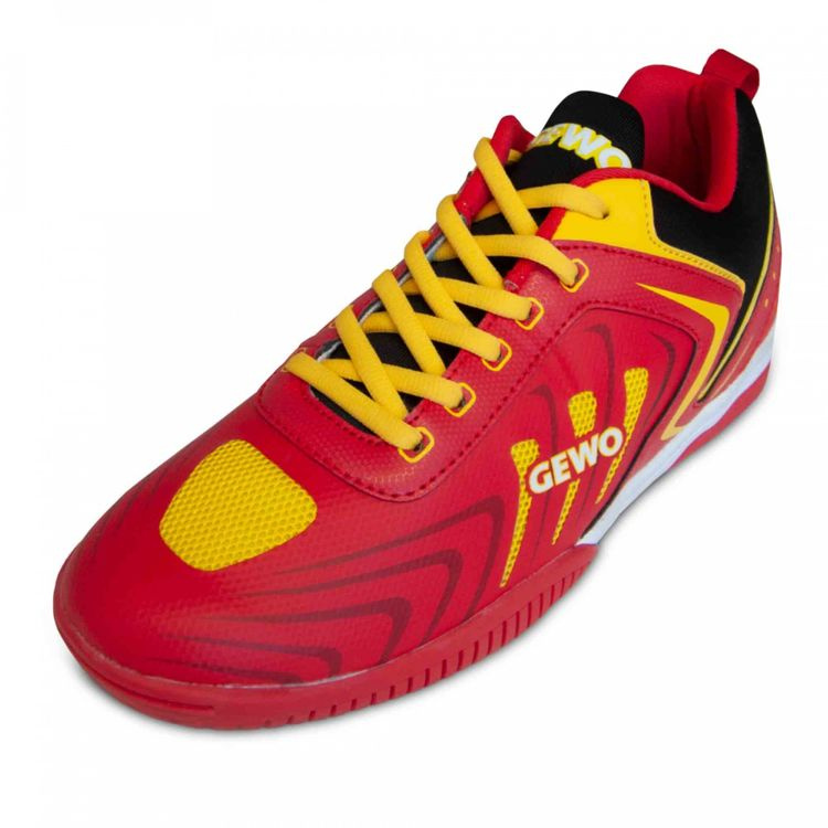 Les chaussures GEWO Speed Flex One sont plates, légères et rapides. Il offre tout ce dont vous avez besoin dans le tennis de table d’aujourd’hui. La semelle en caoutchouc naturel 2-ZONE-PROFILE offre l’adhérence nécessaire pour effectuer des mouvements rapides: La zone 1 permet le déplacement latéral de toutes les marches avec le GRIP-DOTS disposé horizontalement. La zone 2 supporte les mouvements de rotation et les changements de direction rapides sur la plante du pied. Le grip est maintenu longtemps grâce à la qualité élevée du caoutchouc HQ résistant à l’abrasion. La semelle est 100% SANS MARQUE et impressionne toujours avec des couleurs vives. Le cœur de GEWO Speed Flex One est la semelle intermédiaire plate en matériau PHILON HAUTE DENSITÉ. Le matériau est capable d’absorber l’énergie de l’impact du jeu de jambes.